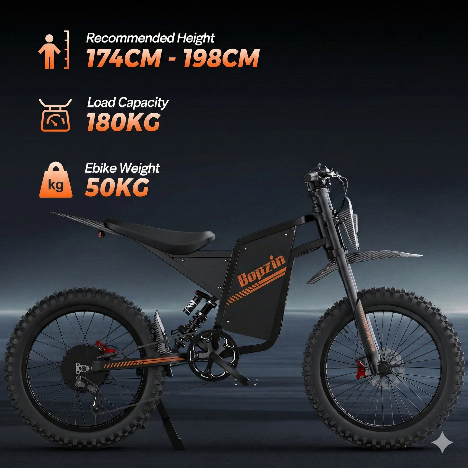 Bopzin Q8 60V, 2000W Breitreifen-E-Bike: Erobern Sie Stadt und Gelände
