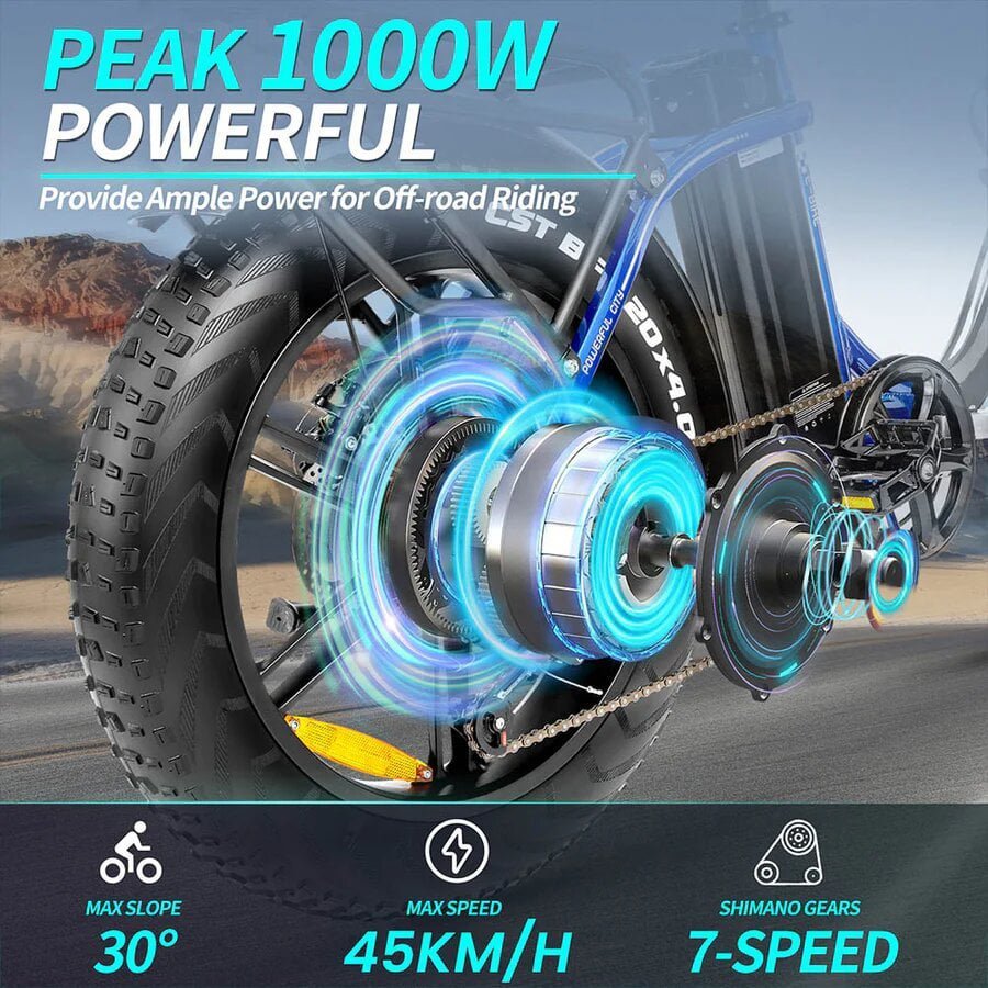Equipped with a 48V 20Ah lithium battery, this e-bike offers an impressive range: